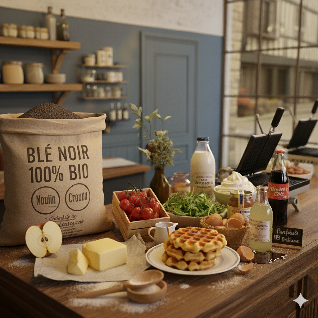 Nous sommes fiers de collaborer avec des producteurs et artisans locaux. Ce choix n’est pas un hasard : il nous permet de vous garantir une fraîcheur incomparable et de soutenir l’économie de notre région. De la farine de blé noir 100% biologique pour nos gaufres salées aux œufs de poules élevées en plein air, en passant par le beurre AOP, tout est sélectionné pour son excellence.